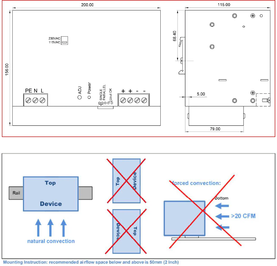 | AC Input Rating | 115Vac<16.8A 230Vac<9A (recommended CB type C16A (230Vac) or C20A (115Vac) or larger) |