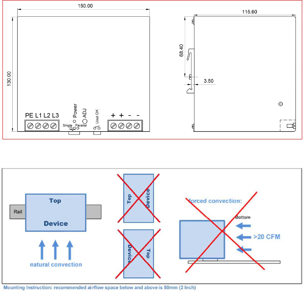 Model Number | Input Voltage (Vac) | Output Voltage (Vdc) | Output Current (A) | ||