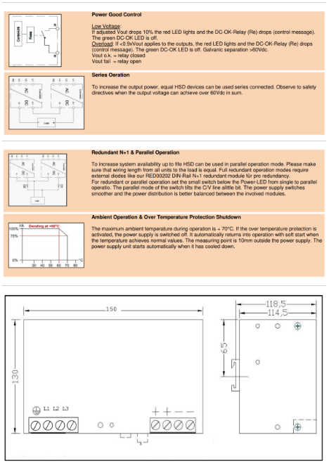 - 20°C…+70°C operating, derating 2,5%/°C >60°C |