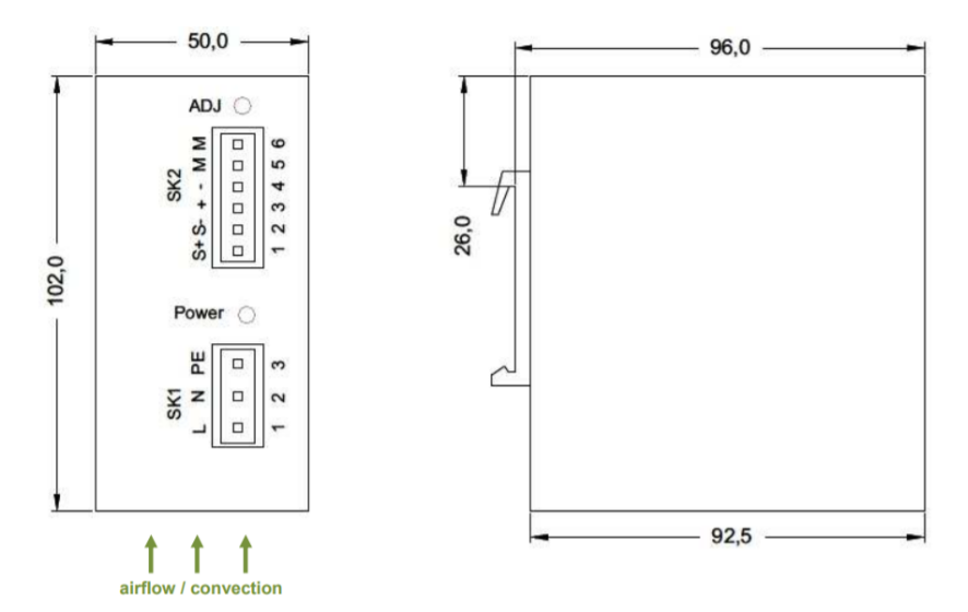 HSW00901.Vout+T+options Example: 24V for DIN-Rail with coating = HSW00901.24TC |