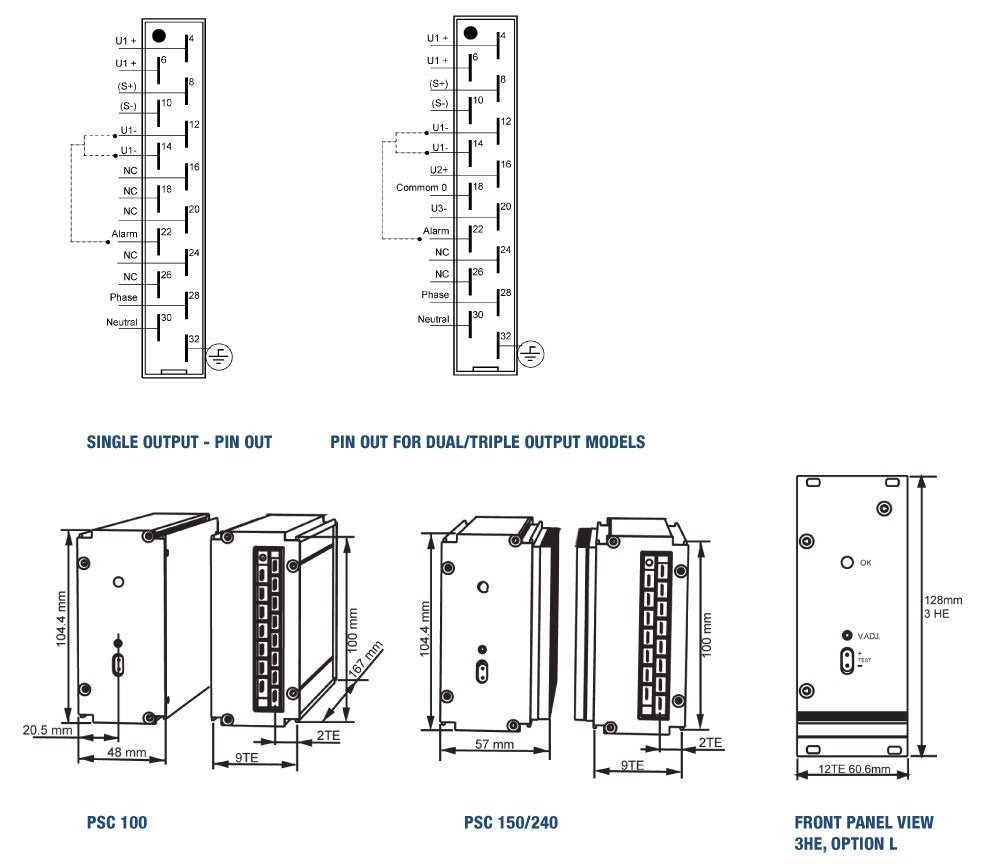PSC100AC24S24 | 176-264Vac | 24V | 3A | 24V | 1.2A | 10TE | 100W |
