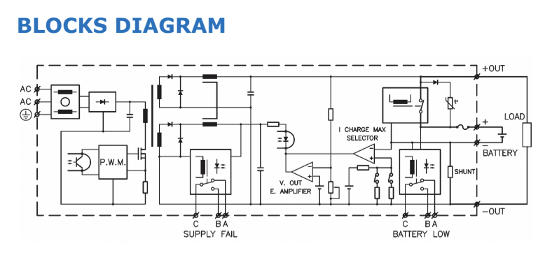 - Comprehensive Alarm Outputs: Relay-based alarms for supply failure and low battery status for proactive monitoring.