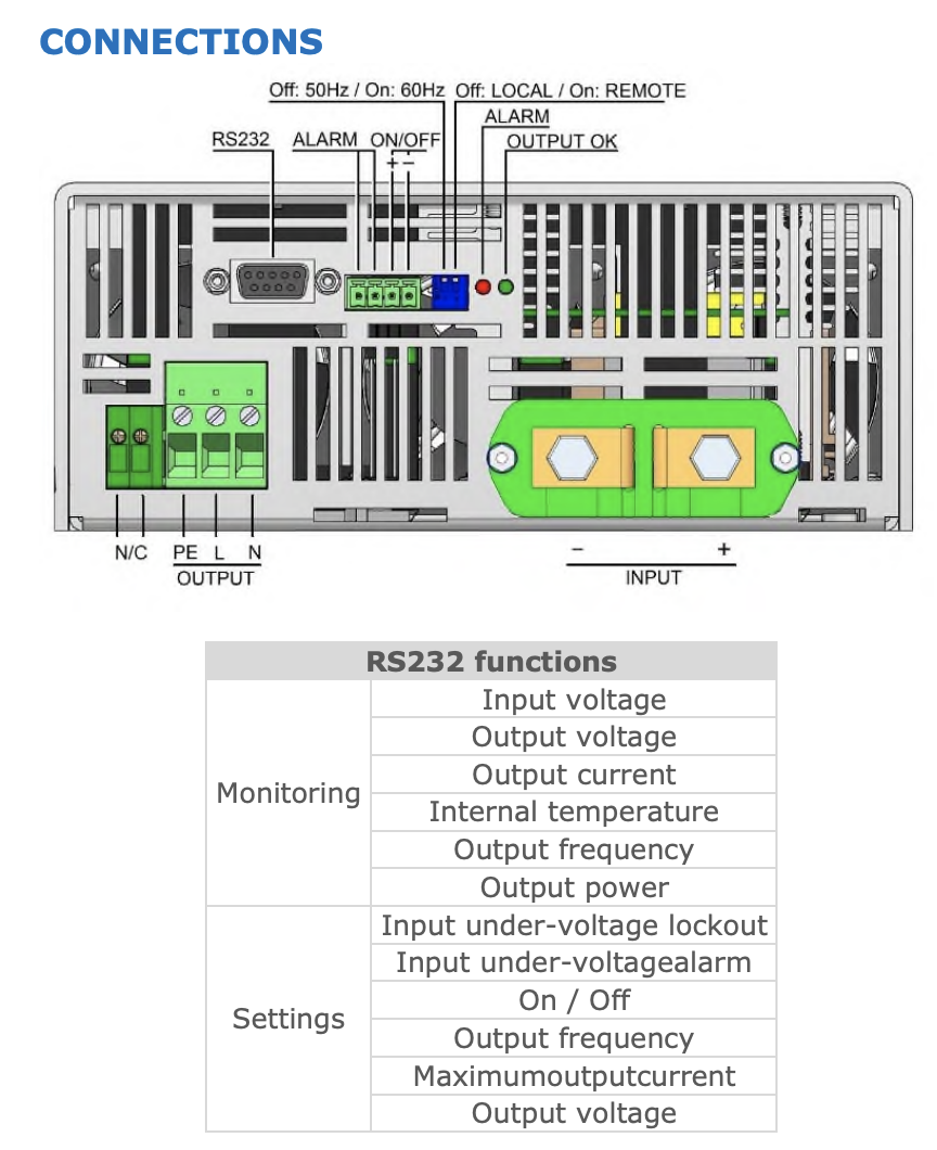 ODS-3000-7155 | 48Vdc: 33.6 - 60Vdc | 230Vac 50 / 60Hz ± 0.25Hz | 3,000 VA | |
