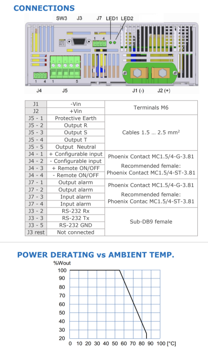 Configurable input (reverse or mid-power) | ON: applying 15 ... 143 Vdc, Impedance >35kΩ |