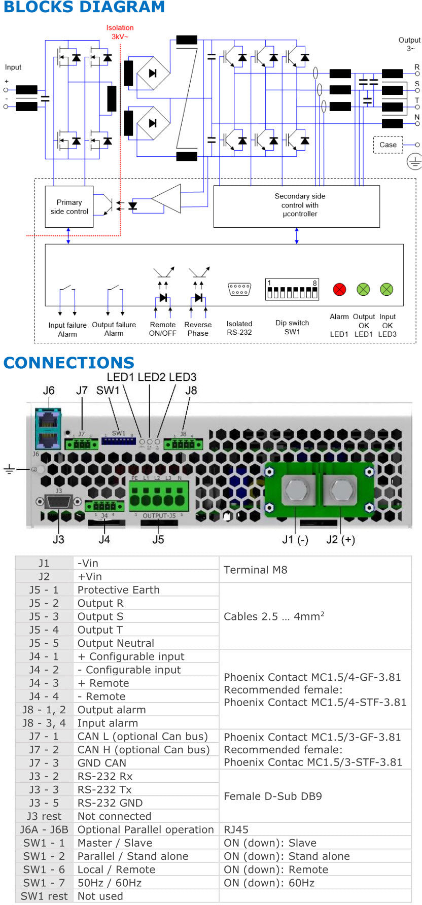 ODX-6000-7505 | 48Vdc: 33.6 - 60Vdc | 400Vac, 50Hz / 60Hz | 6000 VA | |