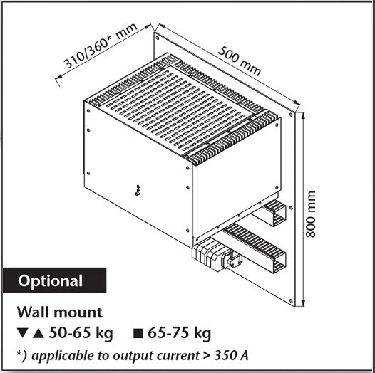 Signal Options | See selection table for details Option pr: input voltage supervision (power ok) incl. relay contacts Option dr: output voltage supervision (DC ok) incl. relay contacts Option cf: charger / converter fail supervision incl. relay contacts Option ac: AC ok for inverter including relay contacts |