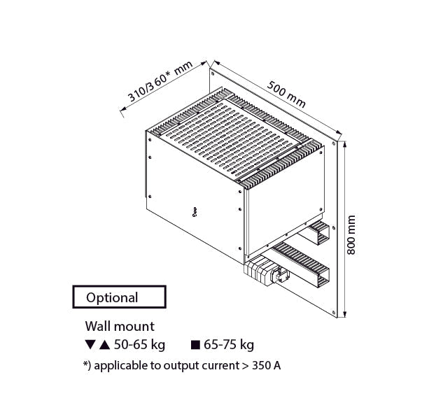 The Schaefer C5800D Series is a robust industrial-grade DC/DC converter designed for high-power applications demanding exceptional reliability. With a power rating of 12 kW, the C5800D supports a wide range of DC input voltages from 80Vdc to 800Vdc and provides output voltages from 24Vdc to 400Vdc, accommodating both step-up and step-down configurations. Designed for stand-alone use or parallel operation for larger or redundant systems, it offers true scalability. The C5800D features fan-assisted cooling to ensure reliable performance under heavy load or temperature conditions. Available in wall-mount or 19" plug-in module configurations (6U or 9U), it provides flexible mounting options to meet most system requirements. Optional features, such as monitoring, control, and enhanced environmental protection, add further adaptability. Ideal for industrial and renewable energy markets, the C5800D excels in powering equipment from high-voltage battery banks and other demanding applications.