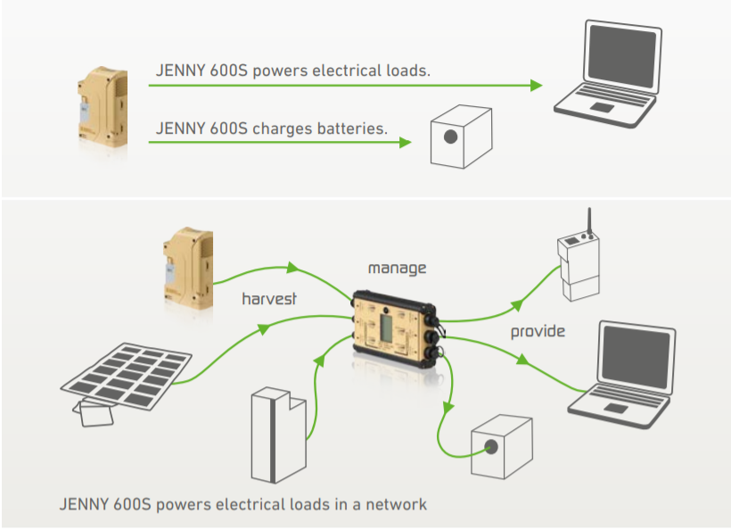 The SFC Energy JENNY 600S Fuel Cell is a tactical power solution engineered specifically for military field operations, delivering reliable, silent, and low-profile energy for critical off-grid applications. Leveraging advanced methanol fuel cell technology, the JENNY 600S provides extended operational power with minimal thermal and acoustic signatures, making it ideal for covert missions. Designed to support soldiers in the field, its lightweight, rugged build ensures rapid deployment and resilience across harsh terrains and extreme conditions. With long-lasting, low-maintenance operation, the JENNY 600S is purpose-built to sustain troops and mission-critical equipment in the most demanding environments.